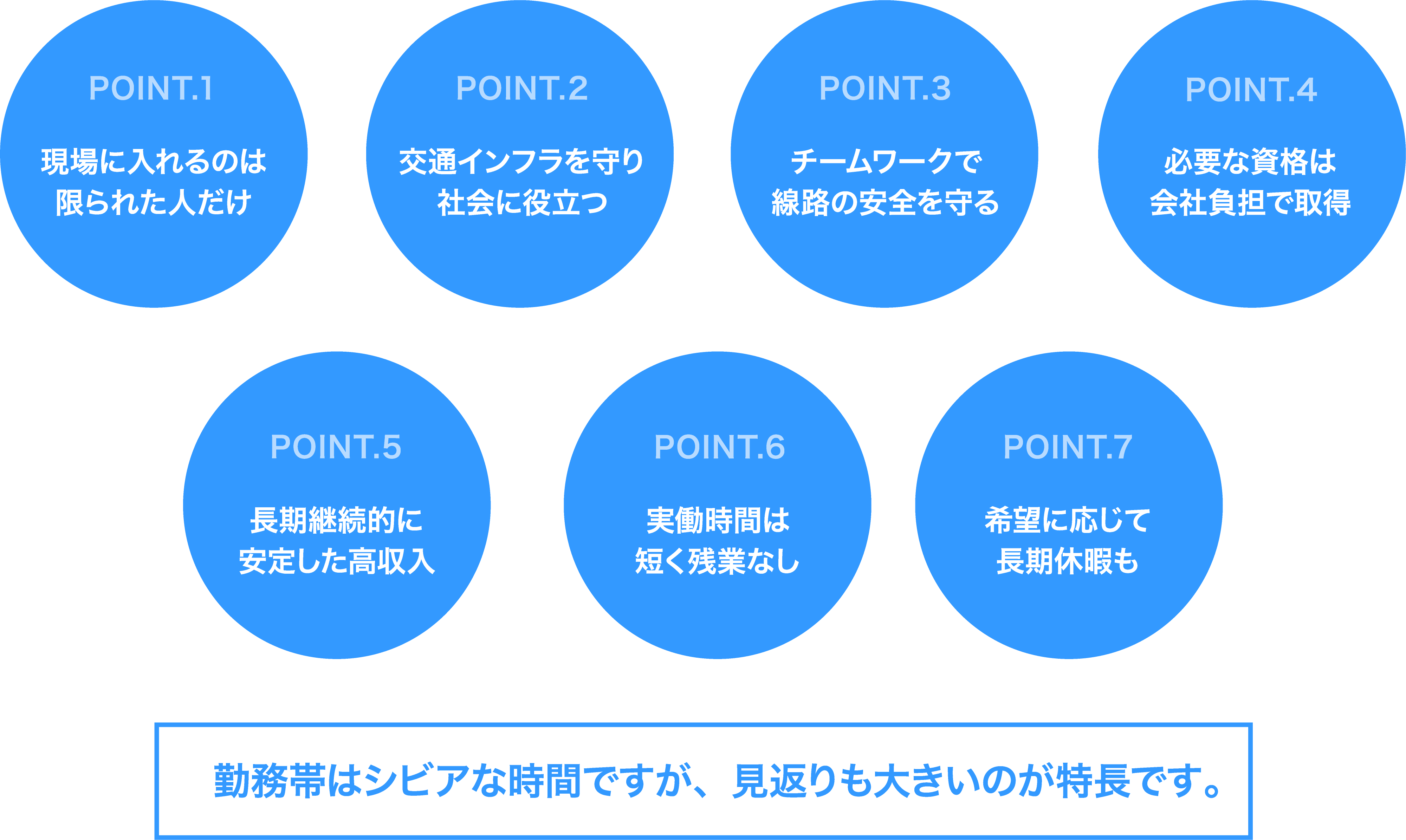 社会への影響力の大きな交通インフラを支え、責任ある役割を果たしております。私たちには「線路のプロ」としての誇りがあります。日々の作業においては機械化、システム化が進み、10年前、20年前と比べて業務は格段に安全になり、負担は減りました。しかし、やはり最後に頼れるのは人の目であり人の手であります。これまで築った高い技術こそが私たちが求められる理由としてそこにあります。